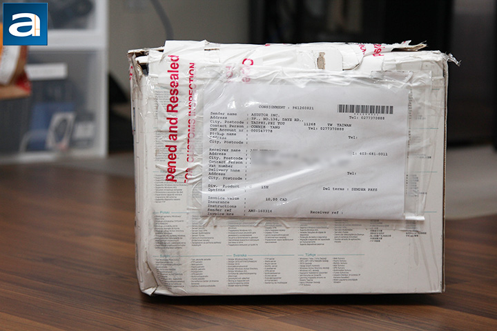 Our review unit of the ASUSTOR AS3202T came in a really beat up corrugated cardboard box, courtesy of some old packaging donated by another ASUSTOR network attached storage model as always. Despite what I saw, I was not particularly worried when I saw something that looked like this arrived at my doorstep, considering everything we got from ASUSTOR has always looked beat up upon arrival. Beginning its trip in Taiwan with TNT Express, and transferred to Purolator Air after making its way across the Pacific Ocean, the contents inside turned out to be safe and sound for our review today here in Calgary, Alberta, Canada.