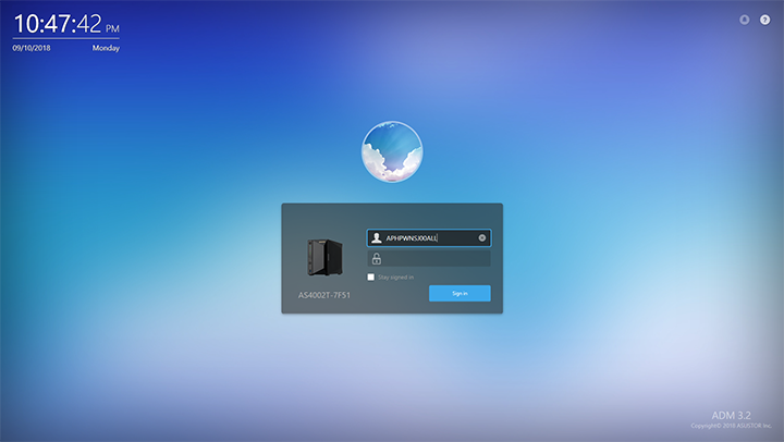 After setting up the NAS, we are sent to the login page, which is pictured above. Pointing our web browser to our NAS name or the LAN IP address assigned to it will give us this page. All we have to do here is enter the username and password set up earlier, then we are sent on our way to the main page. Additionally, the user can choose to stay signed in such that they do not have to sign in every time they access the page. The interface for the website is based off of the built in ASUSTOR Linux based OS. The operating system is called ADM or ASUSTOR Data Master, and is advertised to be one of the most modern NAS operating systems to date. Judging from my past experience, I do not have any objections to this claim. At press time, the latest version is ADM 3.2.1.RKU4.