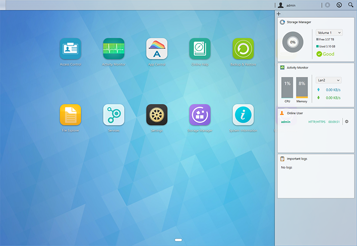 When it comes to visual appearance, the web interface of ASUSTOR Data Master does indeed look quite sleek and modern. The latest version further enhances this, and it is hard not to draw comparisons to Apple's iOS due to the usage of buttons for simplicity. This is not the first ASUSTOR product we have reviewed running ADM, but we will still take a closer look at the software provided and all the features that comes along with it in a deeper fashion. In my personal opinion, I feel its sleek and simple layout to be a good thing. A lot of new home NAS users want simplicity -- after all, no device should take a Computer Science degree to figure out how it works -- and this system delivers just that. Advanced options can also be found if needed. The usage of advanced scripting for the overall design makes it look sleek and practical to use. You can even drag the icons around, remove shortcuts, and add your own items here, just like a real desktop.