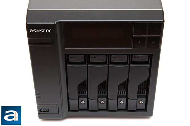 The ASUSTOR AS7004T's LCD display is navigated by four rather large buttons adjacent to it. They are not labeled by text, but just by looking at the symbols, one can easily tell they are Up/Down, Enter, and Select. I found the layout so intuitive, if I were to take the derivative of the learning curve, the result would be zero. When on, its LCD screen features a white backlight; and displays large, clear text in white to contrast with its black background. I actually like this a lot more than QNAP's blue background, as this design is classier and more contemporary. The LCD display allows the user to monitor quick information as well as easily perform some configuration and maintenance tasks. The easy to access drive bays in conjunction with convenience added by the simple LCD screen really added to the overall usage experience of these excellent network appliances on my network. By retaining its excellent design, there is absolutely no learning curve for users who are familiar with using ASUSTOR NAS systems -- or any NAS device, for that matter -- it is all plug and play.