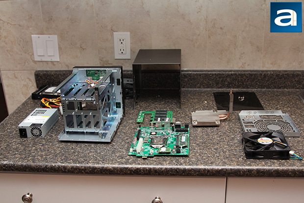 Unless you are someone determined to void your warranty and persistent enough to rip your new $1000+ file server apart, it is actually quite a challenge to dig into the further details on this product. I bet the guy who designed the chassis was probably thinking to himself, "No one is going to take this product apart, but if someone tries, I will make their life as hard as possible." Similar to QNAP, ASUSTOR has 'conveniently' made everything interlocking -- for example, the motherboard cannot be removed unless you release the SATA backplane, which cannot be taken out by itself, since it is blocked off by the chassis frame and power supply. But if you are as inclined as I have, then a bit of persistence and a half an hour of time will prove to be quite rewarding. (It took me almost two hours with my first QNAP, but with some experience, half an hour was good enough this time around.) After removing the power supply and disengaging the chassis back panel, remove both screws on the SATA backplane. You can now slide it out by moving it to the left. Take out all the screws at the back of the motherboard, disconnect all the cables, and a small bit of wiggle room will allow you to take it out entirely. Now we can finally really take a closer look at the hardware under the hood.