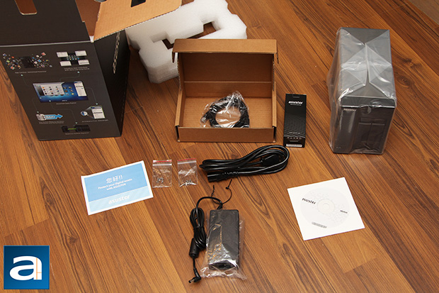 Opening the retail box reveals the ASUSTOR AS-202TE clipped between two large Styrofoam brackets, and wrapped in a large plastic bag to ensure no bumps and scratches occurs during transport. A separate accessory box holds all your accessories in place, making it organized and easy to find. Overall, I found the packaging to be simple and effective, and I have never had any problems finding what I need from the factory.