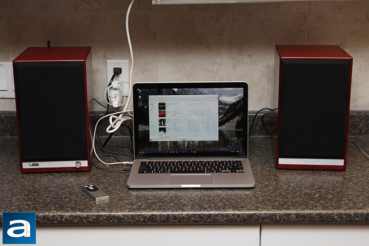 This is not my actual test setup, but putting the Audioengine HD6 beside a MacBook Pro makes everything look classy.