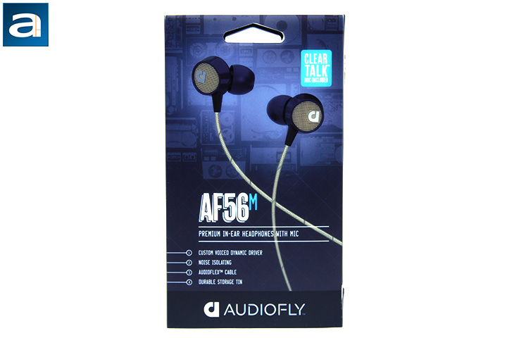 Our review unit of the Audiofly AF56m came in retail packaging. The box art carries a predominantly blue and black color scheme, but may be slightly depressing to look at, considering we are right in the beginning of January when writing this review, haha. That aside, the hang package will fit well in any retail store setting. The earphones in the Blue Tweed color variation is shown more than life-size in the middle, along with a strip showing the Audiofly brand along the bottom. A plastic window at the back of the retail package shows off exactly what is inside. Since this is the 'm' model, a label near the upper right hand corner calls your attention to its "Clear Talk" microphone designation. What I found particularly interesting is the rest of the text on the box is done in some sort of funky comic font. This includes the model number, product description, and feature highlight list, as you can see in our photo above. Thankfully, this novelty is not extended to the back, where a couple of product description paragraphs and expanded feature highlights with thumbnails are found.