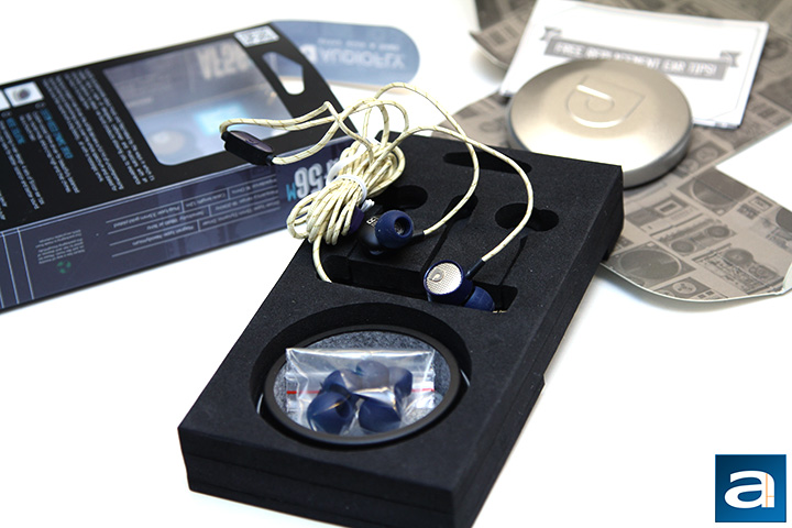 After sliding the contents out from either the top or the bottom, we were met with a second cardboard wrapper to unravel before getting to the meat of the contents. The meat of the contents, of course, are neatly organized on a black foam tray. Out of the box, you will receive the Audiofly AF56m earphones itself, three sets of sleeves (The medium tips are pre-installed for you already), tin carrying case, and a user guide/warranty information booklet. Needless to say, there is nothing fancy, but you will get everything you need to get going.