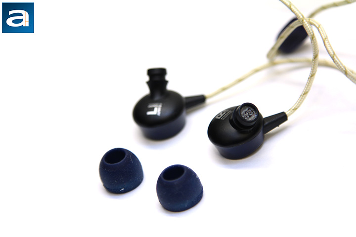 A closer look at Audiofly's AF56m earbuds. The plastic casing and mesh exterior surface is not particularly special in my opinion, but it does carry a bit of visual interest. Audiofly's logo is embossed onto the outer mesh, with "L" and "R" clearly labeled on the inside. The small text adjacent to the left and right labels include the model number and "Designed in Australia" -- if you can read it, of course. It is important to note the relatively large enclosure is not made without reason. The AF56m features relatively large 13mm drivers, which typically and theoretically translate to more powerful bass and wider soundstaging. It has a rated frequency response of 18Hz to 20kHz, with sensitivity at 118dB @ 1kHz, and impedance of 16 ohms. Like many modern earphones, the drivers aim directly into your ear for a more direct and transparent sound reproduction characteristic. At the same time, it makes the earphones much easier to clean in the long run too. The sleeves assist the aim into the user's ear canals, and since these earphones are designed for a closed configuration, the Audiofly AF56m are made for passive noise canceling.