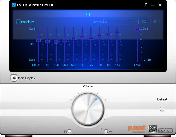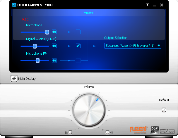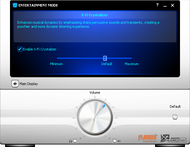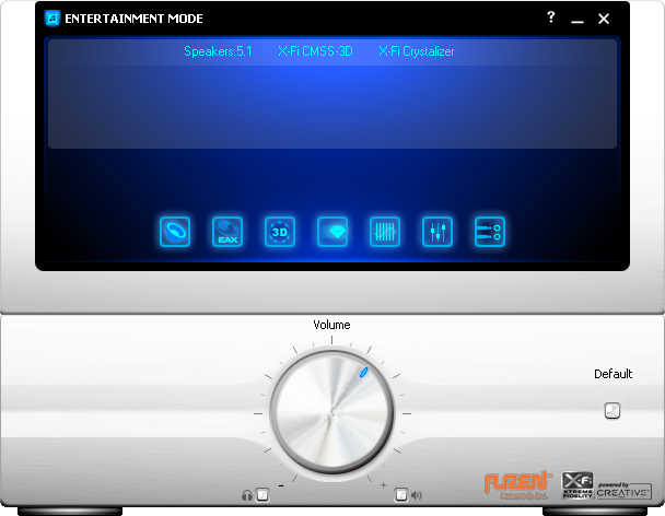 While the Auzentech X-Fi Bravura does not feature a 'true' X-Fi APU/DSP with its Creative CA0110 processor, Auzentech still offer drivers with interface nearly identical to those found on standard Creative X-Fi based sound cards. You obviously won't get the mode switcher, because it does not have Creative's Audio Ring. Entertainment Mode is the screen you are going to get full time due to hardware limitations. Regardless, I leave my true X-Fi cards on Entertainment Mode all the time anyway, so this is the least of my worries haha.