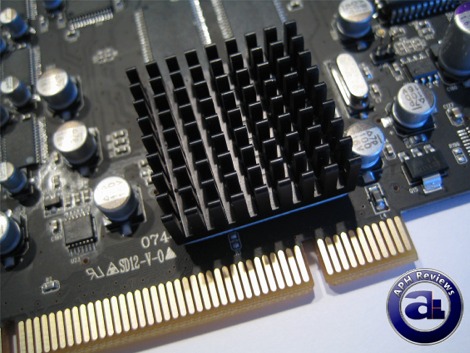 As mentioned earlier, the Creative CA20K1 DSP/APU -- Creative X-Fi audio processor -- is packed behind a small heatsink. This Creative processor has and still is a favorite amongst audio enthusiasts and gamers alike for incredible gaming audio performance, as well as being a very powerful audio processor by itself. Support for Creative ALchemy brought back hardware acceleration to Vista by translating DirectSound requests into OpenGL audio signals for the X-Fi DSP/APU; and proprietary EAX 5.0 support is definitely another welcomed feature along with a full set of home theater technologies with Auzentech's latest driver release.