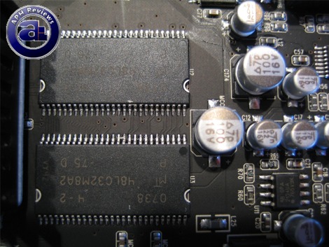 The Auzentech X-Fi Prelude has two Micron 48LC32M8A2 RAM chips used as the Creative X-RAM; which was first introduced with the X-Fi Fatal1ty and Elite Pro -- used for storing sounds in the sound card memory to take an off load the rest of the system -- at least for supported games. There are 2x32Mb ICs for a total of 64MB memory on board.