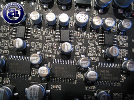 Now back on the stuff that actually matters to the audio -- we'll first have a look at the ADC (Analog to digital converter) used on the Auzentech X-Fi Prelude. Shown in the photo above is AKM's AK5394AVS for converting analog signals such as line-in or microphone to digital signals. This is one of the best chips in the market today as a 24-bit/192kHz ADC, just in case you need to get some of that in for Skype before it tones it down for transmission. Or of course, work... like audio production. Yes, that's right. Work. Hehe.