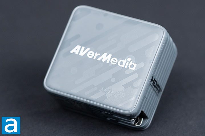 The physical design of the AVerMedia Elite Go GC313Pro is almost the same as the Core Go GC313 with some small differences. Both of them are rectangular prisms with dimensions 66mm in length, 36.6mm in depth, and 62mm in height. Their size is quite compact and weighs 250g, which I would not consider light, but I would not consider it heavy either. The Elite Go is the exact same gray color as the Core Go. There are only two differences that can be found. The first is the text below "AVerMedia", to the bottom right, which prints "Elite Go" rather than "Core Go". The second is the different labels on the USB Type-C ports.