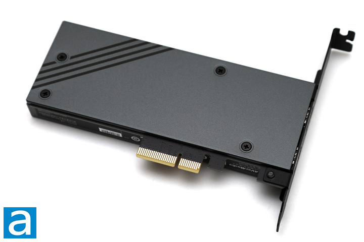 At the other end, we have two HDMI connections, with one for input and another for output. These are both HDMI 2.1-compliant connections, which means it supports up to 4K at 144fps. This is important, as it means PlayStation 5 and Xbox Series X owners can capture their gameplay at full resolution and frame rate. Attached at the back is a full-sized bracket, so you can install it into your system. As for its size, this card is 121mm wide, 160.5mm long, and 21.5mm thick. While this is notably longer than the aforementioned GC571, it still is smaller than most graphics cards and should fit in basically any case. Most of the width just comes from the fact the card has a full bracket to attach to your case, as the rest of the enclosure is not as wide. The card weighs about 150.5g, which is more than double the weight of its smaller brother. Based on the size of the bottom connection, you can see it will fit in a PCI Express 3.0 x4 slot.
