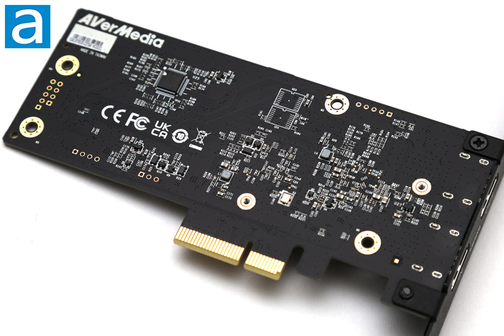On the back, we have more smaller components, including an ENE 6K7750, which is used to control the lighting and its related effects. These lights can be controlled via AVerMedia's Gaming Utility, as you will see shortly, or synchronize with the rest of your motherboard software. Otherwise, you can see we do indeed have the serial number printed here, along with another Made in Taiwan label.
