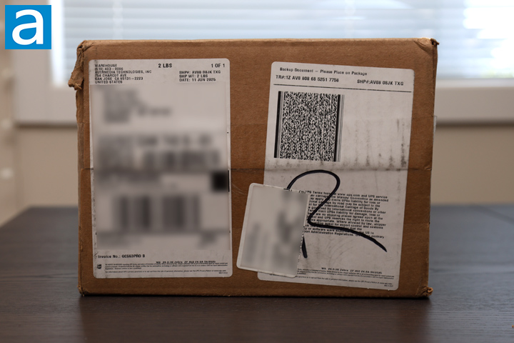 Today's review unit of the Live Gamer ULTRA S GC553Pro arrived from AVerMedia's warehouses in San Jose, California. Traveling with UPS and their Standard ground service, this small brown corrugated cardboard box was passed to us here in Calgary, Alberta in great condition. There were no concerning dents or holes, and the product inside was not damaged in any way. This was the only product inside this box.