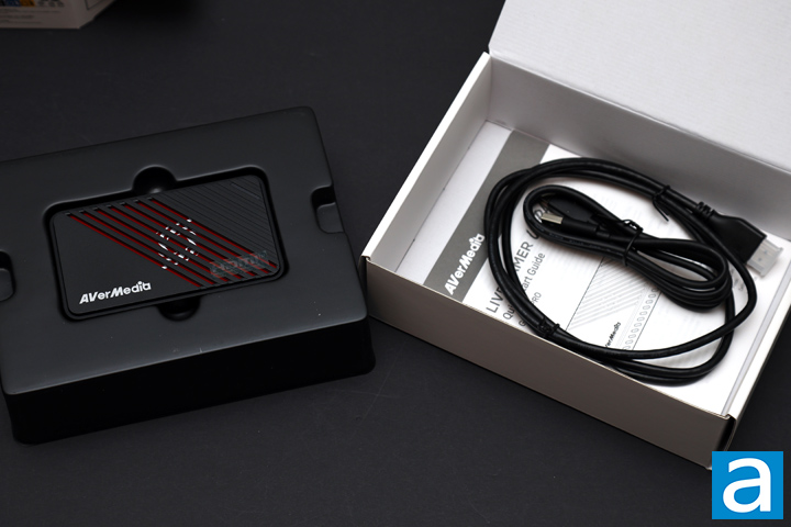 Out of the box, the AVerMedia Live Gamer ULTRA S GC553Pro is found nestled in a black plastic shell to protect the product during shipping. Under the hollow shell, there are two separate bundles of cables. This includes an HDMI 2.0 cable and a USB Type-A to Type-C cable. These inclusions ensure users can quickly get connected and online with the Live Gamer ULTRA S GC553Pro. A quick start guide is also provided.
