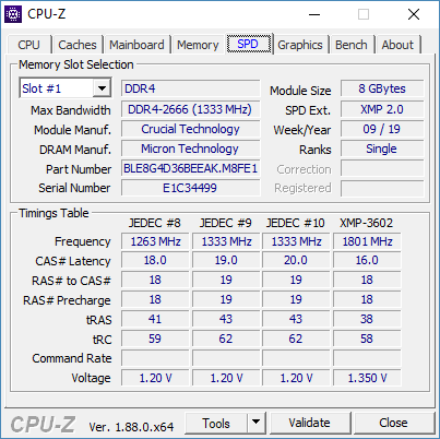 Specs: DDR4 PC4-28800 • 16-18-18 • Unbuffered • NON-ECC • DDR4-3600 • 1.35V • 1024Meg x 64