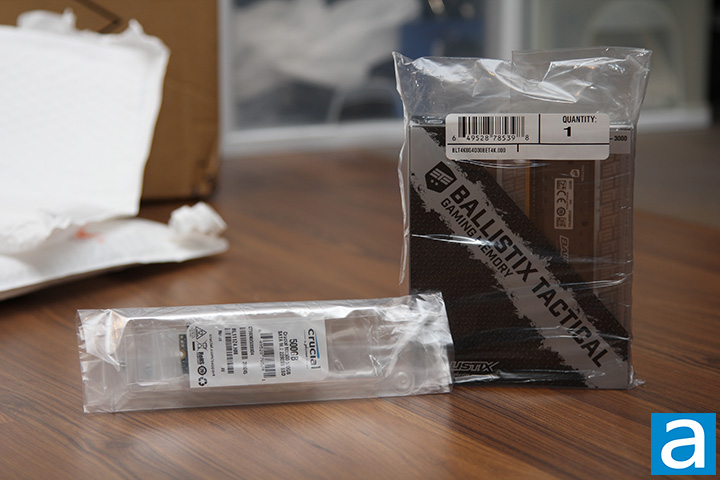 Our review unit of the Ballistix Tactical Tracer RGB PC4-24000 4x8GB memory kit arrived in a FedEx branded bubble envelope from the company's American headquarters in Meridian, Idaho, USA. The trip was made with the Crucial MX500 500GB (M.2) solid state drive I reviewed a few weeks ago. Crucial remains the only company to send us products from that part of our southern neighbors. Using the speedy International Priority service, it only took a day to get to us here in Calgary, Alberta, Canada. As always, everything arrived in excellent condition for our review today.