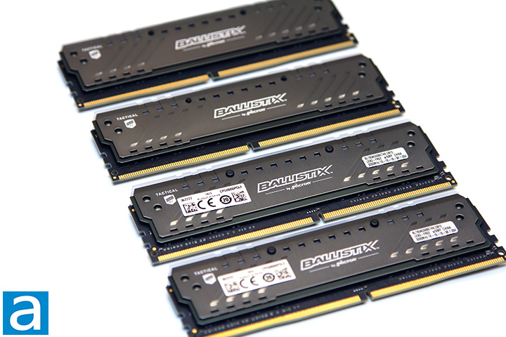 - Ballistix Tactical Tracer RGB PC4-24000 4x8GB @ DDR4-3000 16-18-18-38