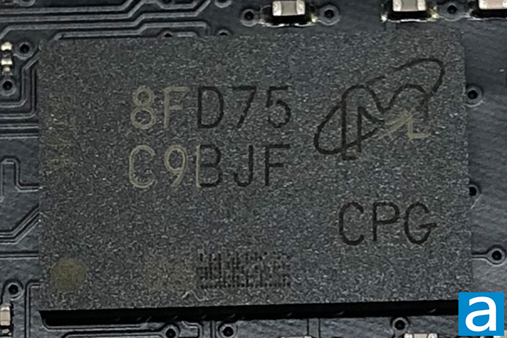 As you can see more clearly in our photo above, the Ballistix Tactical Tracer RGB PC4-24000 4x8GB has a very nice black PCB. Sixteen LEDs are placed on the main PCB itself, and you can control them using your motherboard's software. The LED color, brightness, and effects can be configured. Meanwhile, its heatspreader on top is composed of two separate pieces. The heatspreaders are held to the module itself by a strip of thermally conductive adhesive and are not physically locked together. The adhesive force between the two heatspreaders and memory ICs is pretty strong, so if you ever do take them off, keep your hair dryer around.