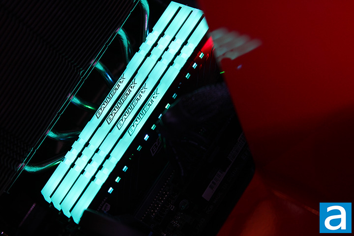 The Ballistix Tactical Tracer RGB PC4-24000 4x8GB, being a part of the latest enthusiast DDR4 line from the company, utilizes a set of medium profile heatspreaders. It is not designed to draw attention with its dark grey heatspreaders and white inscriptions. I found it quite conservative looking, but let us not forget the removable plastic diffuser piece at the top to for its RGB LEDs to shine through. The Ballistix Tactical Tracer RGB's aluminum pieces are distinctively shaped and molded to give it a little more visual flare and complexity. Aluminum is lightweight and serves as a decent heat conductor, while the ventilated heatsink design is for heat dissipation. The Ballistix Tactical Tracer RGB is only about a centimeter taller than modules with no heatspreaders at all. This is useful for systems equipped with side mounted CPU heatsink fans adjacent to the memory slots, as it can piggy-back off the generated airflow. Since the heatspreader height is very moderate, it is still extremely likely for the Ballistix Tactical Tracer RGB to fit under a well-designed cooler with sufficient clearance room. Whether you like to call it marketing gimmick or whatnot, it is impossible nowadays to find performance memory without any form of a heatspreader attached, haha. They do undeniably serve a purpose in dissipating heat, but for most memory modules, unless run at a voltage significantly over designed voltages -- which you will not, special thanks to integrated memory controllers on Intel processors -- this feature is certainly not a requirement. But I will admit they look pretty cool in any windowed chassis.