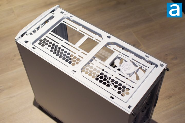 The top panel can be removed by loosening the two curiously non-captive thumbscrews at the back. The top panel then slides back and lifts off. There are six sliding hooks that also hold it in place. Unfortunately, one of the middle hooks was broken before I even touched the panel. Looking at the broken piece, there appears to be some plastic injection issue that caused the part to not properly form. With the top panel removed, the top fan and radiator mounting bracket is revealed. You can slide and remove this bracket by unscrewing two Philips head screws from the side. By default, the third 140mm Silent Wings 4 fan is installed in the rear position. However, a total of three 140mm or 120mm fans or up to a 360mm radiator can be installed. A total of three Silent Wings 4 140mm PWM high-speed fans are included in the case. Each of the fans features rubber mounts to dampen vibrations and have “virtually inaudible operation and superior cooling”. The Silent Wings 4 fans utilize a fluid dynamic bearing and 6-pole motor. They are rated for a maximum air flow of 78.4CFM, air pressure of 2.36mmH2O, and 29.3dB at full speed.