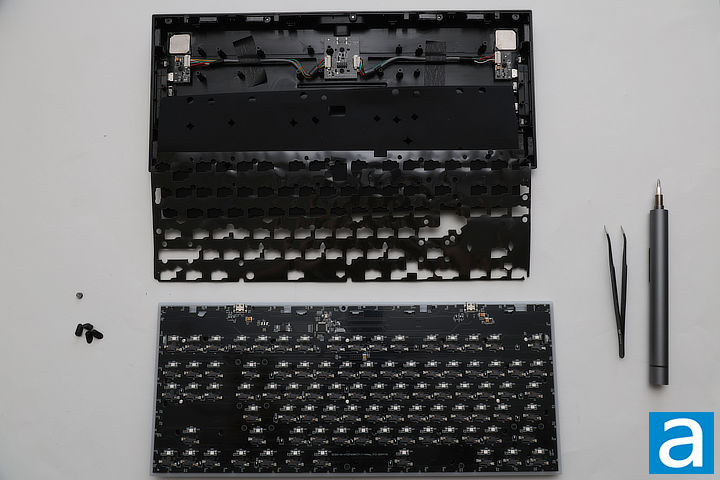 Next, I removed the top plate by unscrewing it and carefully releasing the internal clips, taking care not to break the plastic clips, which are somewhat fragile.