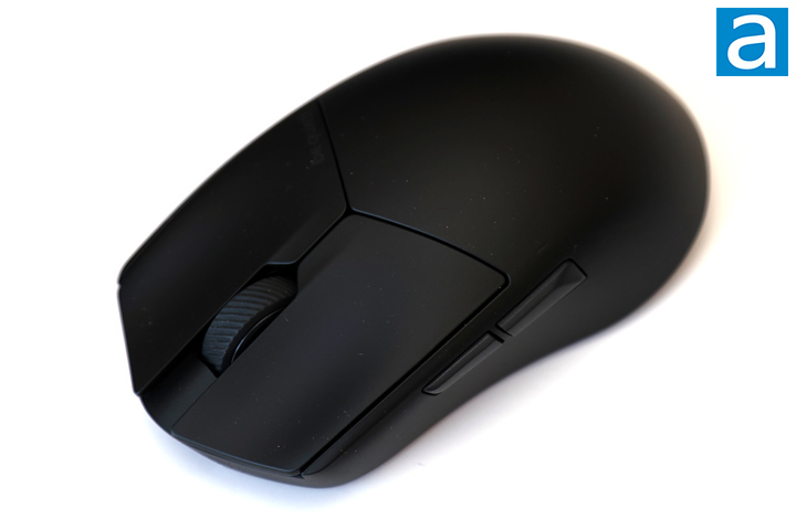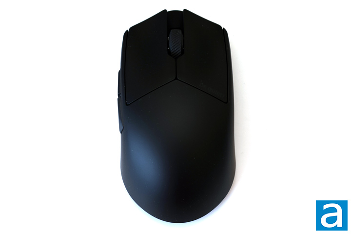 In measurements, the be quiet! Dark Perk Sym is 123mm in length, 66mm in width, and 39mm in maximum height. This is similar in size to other mice I have tested, such as the Epomaker Carbon X or the Cooler Master MM712. It is classified as an ultra-light mouse and at 55g, the mouse is closer in weight to the 58g MM712 than the 45g Carbon X. This small number is due to the mostly hollow interior and porous bottom frame, as you will see shortly. The weight is balanced towards the middle of the mouse, and it lines up with the sensor placement. From the image above, you can see the tallest part of the mouse is in the middle of the body. This is an ambidextrous mouse, and should feel similar for both left- and right-handed users. This means both sides of the mouse drop in a similar curvature, and the bulbous part of the Dark Perk Sym is aligned with the middle of the mouse. If you prefer a right-handed version, you should look at the Dark Perk Ergo instead. The build quality of this mouse is excellent with little to no flex in the body.