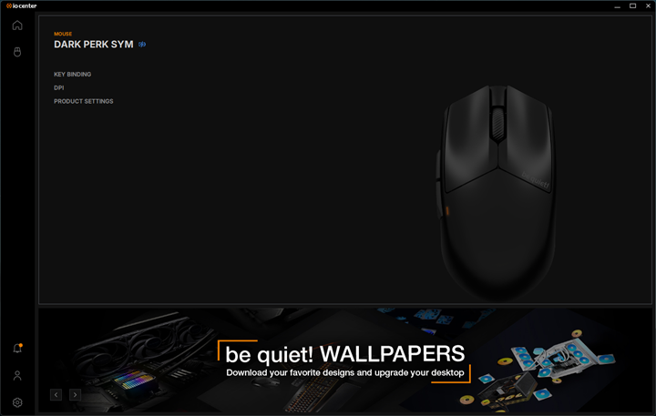 To configure the be quiet! Dark Perk Sym, users have two options and both use the IO Center utility. On Windows and Mac computers, users can download the utility from the manufacturer's website. IO Center is available as a 75MB compressed installer executable. However, if you do not want to do this and have a Chromium-based browser, you can also go to a specific site that offers the same configuration and similar layout as the software utility. Through my testing, I found both offer the same functionality in a similar layout, but the dedicated application enables some operating system-specific changes, including mouse sensitivity and click speed. You cannot use both the website and the utility at the same time, as both check if the counterpart is already connected to the mouse. I really like this way of operating, as be quiet! ensures users can make all the changes they need without needing to install something locally. For review purposes, we tested both options but only took screenshots of the application.