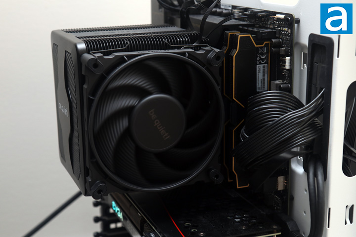 As for the sound analysis section, on a scale of 0 to 10 where 0 is silence and 10 is very loud, I would rate the be quiet! Dark Rock Pro 5 at around 3.5/10 under full load in performance mode, and closer to 2.5/10 in quiet mode. It was notably quieter than most of the other air coolers I have reviewed recently, and this was aided in part to its larger 135mm fan not requiring to spin as fast as other 120mm fans do. It was quite impressive, as I never actually felt the need to use quiet mode. Once again, this was another be quiet! product that lived up to its namesake, which left me impressed.