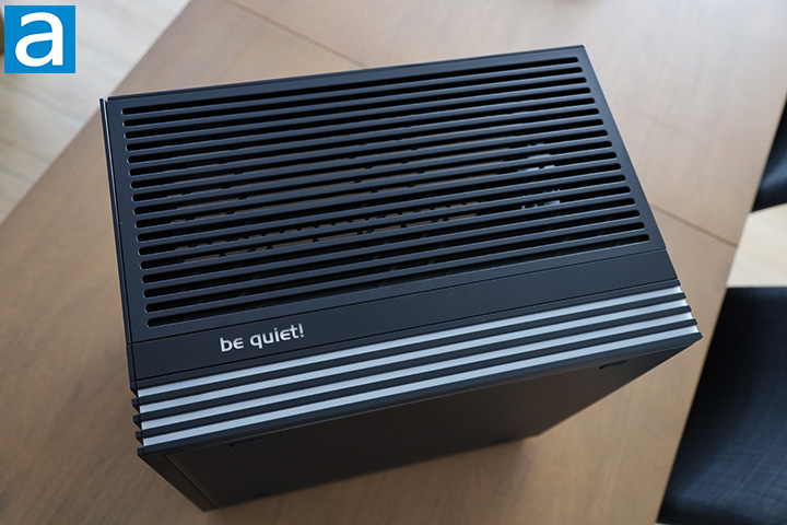 Shifting our focus a little bit, let us take a look at the top of the be quiet! Light Base 600 LX. Traditionally, case designers install top mounted fans to efficiently draw heat away from the processor. This makes a lot of sense, since heat rises, so we are only adhering to the natural laws of physics. Unfortunately, this is a two-way street, as it is also very easy to get a lot of dust in the system that way when it is turned off. I am not a big fan of such a design, and I really dislike it when manufacturers force me to use that opening. In this case, be quiet! has made a reasonable compromise. The top panel is almost completely vented, but there is a large filter behind to keep the dust out. The dust filter will not keep everything out completely, but having three side intake fan and one exhaust fan from the factory -- more on this later -- will produce positive pressure to keep dust out during normal operation and prevent them from settling in when your PC is off. The top panel can also be removed by loosening a captive thumbscrew at the back to remove and clean the dust filter. You can install up to three 120mm or two 140mm fans in this location. Of course, it can accommodate a radiator of equivalent size.