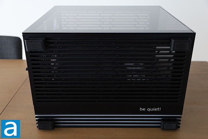 As shown in the above photo, the large power button placed nice and center with a white power LED in the center. The designers managed to create a level of symmetry in an asymmetric fashion. Above the power button, we have one USB 3.2 Type-A and one USB 3.2 Type-C port followed by an ARGB LED control button. Below the power button, we have another USB 3.2 Type-A port, combination 3.5mm audio jack for headphone out and microphone in, and a reset button. Although the reset and ARGB LED control buttons are different, neither of them are labeled, which can be very confusing. Furthermore, the reset button has an indent in the middle while the ARGB LED control button is flat, making the reset button even easier to press accidentally. In my opinion, be quiet! could have at least recessed the reset button to prevent it from being engaged unintentionally. There is no HDD activity LED.