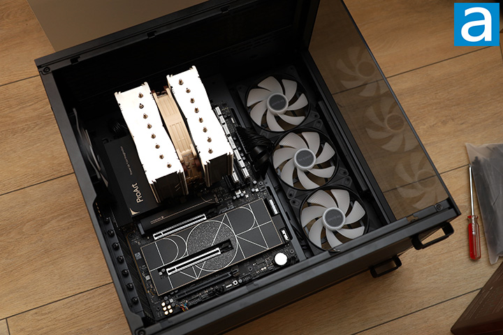 The rest of the installation process came and went smoothly as I got past the initial hiccups described earlier. The placement of the ARGB LED and fan hubs at both the top and bottom of the case was a great design choice in my opinion, since it allows accessibility no matter where your fans are located. The motherboard shown above is the ASUS ProArt Z890-Creator WiFi with an Intel Core Ultra 7 265K behind the Noctua NH-D15 G2 HBC. The RAM shown is the Kingston FURY Renegade DDR5-7200 2x16GB. I only have NVMe SSDs connected to the motherboard, which is representative of most modern builds. I did not install any 2.5" or 3.5" drives, even though the be quiet! Light Base 600 LX supports them. A vertical GPU riser kit is included for you to show off your graphics hardware, should you choose to do so.