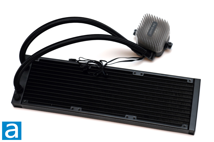 Taking a closer look at the radiator, we have a standard fin layout on the be quiet! Light Loop 360mm. The fins are placed in this manner, so they contact the liquid running through the top and bottom. The result is a wavy set of fins, which are consistent in pattern and without any defects. Heat from the liquid runs through the radiator and transfers to the fins through the contact points. Fans are attached to the radiator to dissipate the heat. The liquid is transported around the loop via tubing. The tubing is made from rubber and sleeved for a nicer finish. This measures 400mm in length, and should fit in most standard mid-tower cases on the market. I personally found this just long enough to mount my radiator on the side, but it was a bit of a stretch. I would have appreciated a bit more length to reduce the strain on the tubes. Obviously, it depends on where you place the radiator in relation to the processor on the motherboard. The tubes are strong and flexible and should not form any kinks, even in more extreme bends. They pivot on the water block for easier maneuverability.