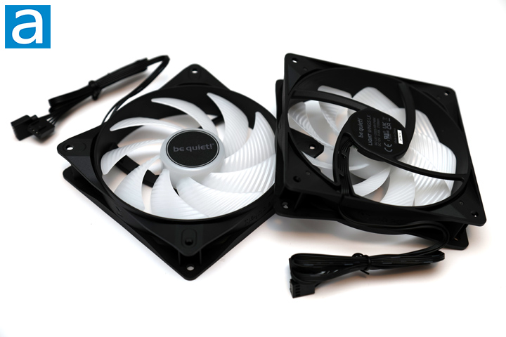 The three fans included with the be quiet! Light Loop 360mm are the Light Wings LX 120mm PWM high-speed. Compared to the original Light Wings fans, these have translucent blades with sixteen ARGB LEDs inside the impeller to shine out of the middle. Internally, we still have rifle bearings with a lifespan of 60,000 hours. The rated noise level is a maximum 30.9dbA, but we will see what this means when we evaluate noise levels. In terms of other numbers, each fan produces a maximum air pressure of 2.51mm H2O with an airflow rating of 61.8CFM. Rubber dampeners can be found on each corner to reduce vibration. Finally, these are controlled with a 4-pin PWM header and a 3-pin ARGB header. With all the fans included, be quiet! provides a combined PWM and ARGB controller out of the box. Unlike the retail versions of these fans, these do not have daisy-chaining ARGB headers, but the included controller fulfills a similar purpose.