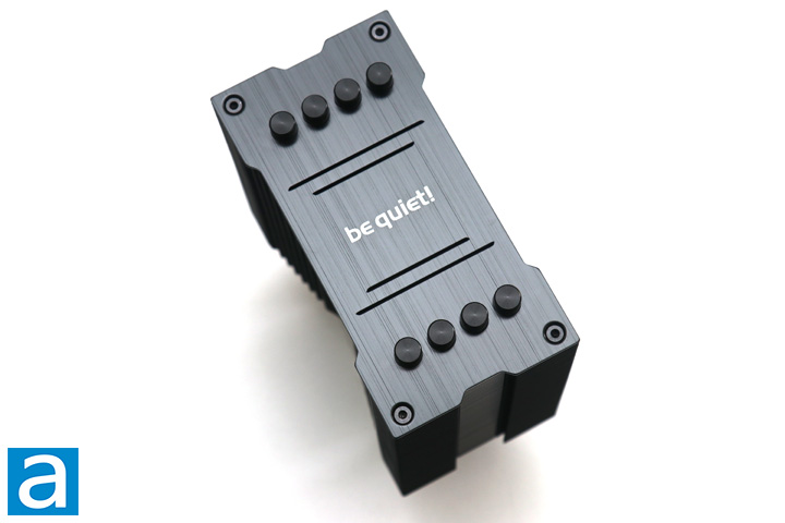 The be quiet! Pure Rock 2 FX is a typical looking cooler with some nice additions to make it sleeker. It utilizes a single tower design comprised of many aluminum fins. A be quiet! logo can be found in the middle, while pipes protrude out the top on each side. All of the fins are covered in a matte black finish, while the copper heat pipes are also coated with the same finish. This makes the Pure Rock 2 FX look a lot cleaner and should fit in many system builds. The attached fan has a black frame too, which integrates well with the rest of the heatsink. Unsurprisingly, the Pure Rock 2 FX is based on the be quiet! Pure Rock 2 Black, so we have a very similar, if not the same, heatsink here.