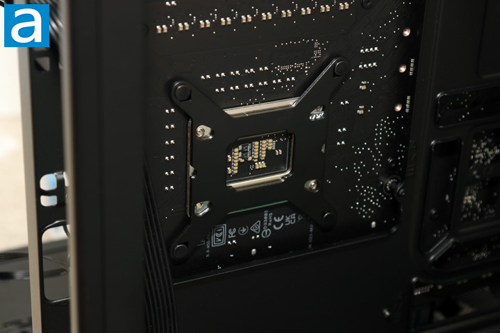 Installation of the be quiet! Pure Rock 2 FX is generally clear, but there are some areas I think could be improved upon. Starting from the top, I installed the backplate to the back of the motherboard. You can use the included metal backplate for Intel systems or the stock motherboard backplate for AMD systems. The included Intel backplate has several holes for mounting on different sockets, as the LGA1700 has mounting holes that are further apart. If you are using this backplate, you will need to put bolts in place based on the location of the mounting holes in your motherboard. These bolts are held on with thick rubber rings, but I sometimes found the bolts would slide around as the rings did not provide enough grip to secure them in place. Afterwards, I screwed in a set of thumbscrews, one for each protruding bolt.