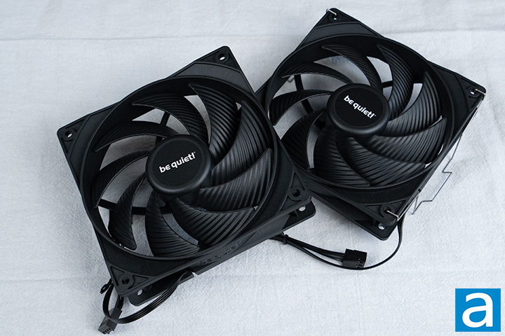 As for the fans used, the Pure Rock Pro 3 utilizes two be quiet! Pure Wings 3 120mm PWM HS fans. These 9-blade fans are rated to have a maximum airflow of 59.6 CFM and a maximum air pressure of 2.41 mmH₂O. The dimensions are 120mm in length, 25mm in width, and 120mm in height. For the internal spinning mechanism, the fans use rifle bearings, which are improved versions of sleeve bearings. These cause the fans to have an expected lifespan of 80,000 hours. Although the expected lifespan is not as high as fluid dynamic bearings of 300,000 hours typical, its simpler design reduces the overall cost. The maximum sound produced is expected to be 34.8dBA with both fans attached to the heatsinks, which is a bit louder than whispering.
