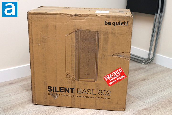 Despite the large red fragile sticker, it was clear that the be quiet! Silent Base 802 faced quite an ordeal before arriving to our offices in Calgary, Alberta. There are large gashes on the sides of the box and the handle area is completely ripped through, making the box actually a bit tricky to carry around. Originating from Walnut, California, this large box traveled alongside with the be quiet! Pure Loop 240mm, albeit in a different box, via UPS and their Standard ground service. Moving on, the retail packaging of the Silent Base 802 doubled as the shipping container. The box itself is typical with a grayscale picture of the case on the front and a product name underneath. The be quiet! logo can be found on the top right corner, while a description of "Excellent Versatility, Performance and Silence" are displayed on the front. Around the box, we have a few more words to describe features and specifications of the Silent Base 802. Otherwise, there is not much else to look at, so I grabbed a pair of scissors to open up whatever was left of this box.
