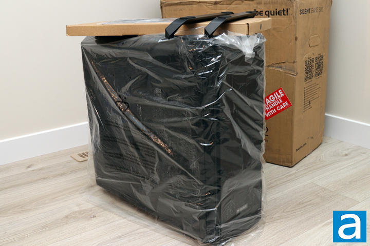 Opening up the box revealed the extent of the damage that our Silent Base 802 box endured. In addition to all of the scrapes, gashes, and bruises, both pieces of foam brackets holding the Silent Base 802 were broken at the edges. This was a bit of a shame and I would have liked to see be quiet! use a bit more solid of packing material. Despite all of this damage, the case itself was protected by a plastic bag to prevent surface damage like scratches. A large flat box is also included with the Silent Base 802 and it holds a few of the aforementioned case accessories. Two more large plastic pieces are taped to the foam brackets and these are the two feet that you can mount to the bottom. I wonder why be quiet! did not just mount this already, but the installation of the feet was generally straightforward. As usual with be quiet! cases, the Silent Base 802 comes with a three-year warranty, which is a good length of time.