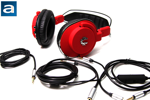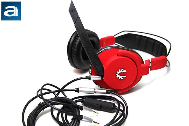 As you can see in our photo above, our BitFenix Flo in Fire Red is quite sharp to behold. Its red plastic material is complemented by a mixture of silver for certain edges and black on all the soft surfaces, creating an visually distinctive appearance. I do not know about other colors, but Fire Red is definitely very attention grabbing. The oval ear cups are tilted backward slightly to accommodate the shape and location of your ears, while a circular bracket hinges them on to allow it to be rotated a full one hundred and eighty degrees about one axis. BitFenix's shiny logo is proudly displayed on both sides. Each side of the headband is labeled "L" and "R", so you will never be confused which side is which. The headband is composed of two sections. The plastic section that actually makes contact with your head has five foam pads on the interior to improve comfort, while two steel wires that fly over the top forms the frame of the BitFenix Flo. This separates the structural elements from the fitting elements to improve pressure distribution on your head for increased comfort. Overall, the construction quality of the BitFenix Flo is pretty good. It has a pretty liberal use of plastic, but they are soft to touch with a substantial feel, so it does not feels cheap. The steel wire frame provides the rest of the structural rigidity required for the headphones. Meanwhile, the audio cable and microphone can be fully detached from the BitFenix Flo, where the jacks are located on the left ear cup. Three cables are included out of the box. We will dig into the details of all these in just a moment.
