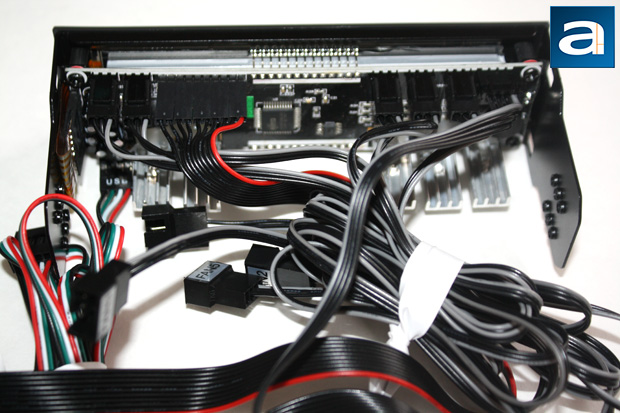 The back of the Recon, which will only be seen by users during the installation process, is spacious and allows for easy access. The solder work on the board is clean, and the cables came bundled and zip-tied from the factory. BitFenix has numbered each fan connector to their respective temperature probe to minimize user errors during installation. During my installation, I had to replace one of the temperature probes, because it was dysfunctional at the time of installation. Thankfully, BitFenix has included two extra probes. Power is supplied by a 4-pin Molex connector with pass through from your PSU with lead-out cables designed for 3-pin fans. The ends connecting the Recon to the fans are 3-pin, with capabilities of transmitting RPM data. This allows users to monitor and control the fan speeds.
