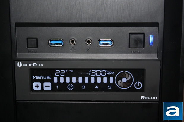 In terms of the design for a fan controller, BitFenix has done a great job in this department. Grazing my hand across the face of the unit, the use of the SofTouch bezel adds a simple yet special touch to the overall design of the Recon. The looks and the feel are all there, but what about the function? Let me put it this way, if you need a nice looking fan controller, the Recon has its merits. The touchscreen allows users to monitor the temperature in specific areas inside their PC and to change the fan speed in response. In addition, being able to control fan speeds in small increments allow for more precise cooling throughout the computer. In other words, it allows you to "recon" -- pun intended -- vital statistics of your system. For around $45 USD around press time, it looks great on paper, but there are some pretty major flaws. The primary one is the wireless support the unit was promised to users. Although users could just as easily read the temperature and adjust their fans accordingly on the touchscreen, the smartphone-enabled feature could have been neat and useful to users as an option... if it actually worked. Secondly, the LCD screen viewing angles is really a nuisance to users. If the main PC unit is placed on the floor, users are not able to accurately read the LCD display. Thirdly, its inability to restart on the last state after a hard reset is annoying. Lastly, its audio alert system is not well implemented. A suggestion I have aside from my main complaints is for the next Recon to have customizable LED colors for each profile so users can identify which fan they are controlling. I personally think BitFenix has made a good attempt of providing an innovative touchscreen LED fan controller, but the major drawbacks surely overshadowed the all the good that it brings forth.