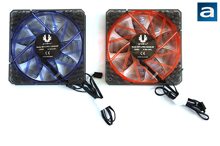 Since both of the fans only vary by color, I will only list the specifications once. The BitFenix Spectre Pro LED is rated at 56.22 CFM, 18.9 dB and 0.12 mmHg. By comparing to an earlier review done by Technical Editor Aaron Lai on the SilverStone FQ122, FW122, and FW122, the one most comparable to our fans today is the FQ122. The SilverStone FQ122 is rated at 63.8 CFM, 24.9 dB, and 0.11 mmHg.