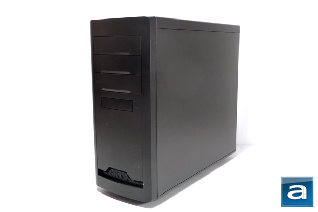The first thing you will notice, or at least I hope you will notice, is the exterior is completely black. Sticking to a simple design and a nice dark body makes for a very simple, plain, and smooth surface. On the downside, nothing about this chassis jumps out at me. I guess if you want to call it a sleeper look, you could push that, but it really just looks like a generic box with nothing outstanding about it. I am happy about the fact that it doesn't look ultra cheap; it simply has a clean look, which might even tickle the interests of a few people. The edges of each panel and component are clearly visible, which is great from a functional point of view, but takes a little bit away from the overall visual appeal. This case could be described as a girl going out for a night at the bar in a black dress, and happened to put on a bit more eyeliner than necessary. While it doesn't make her ugly, it does take away from the look.