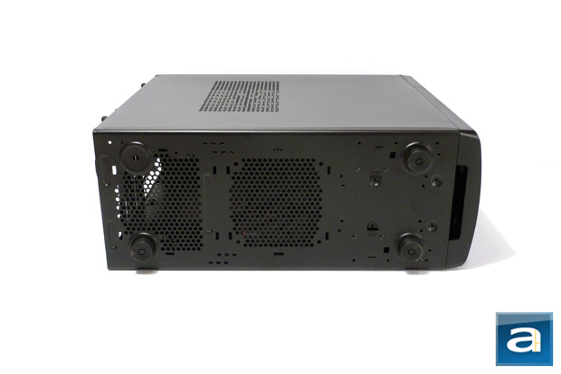 I also would like to point out that each port is also nicely labeled for the not-so-tech-savvy users out there. On the right side of the top, there is a reasonably large power button with a much smaller reset button adjacent to it. Both buttons have a reasonable amount of travel before becoming fully depressed. So while you are trying to figure out which way to plug in the USB, rest assured, you won't accidentally hit the power button out of frustration. As you look further down the top, you will see two vents for 120mm case fans. A very nice touch for the computer as these will allow you to install additional fans for additional cooling. Overall, I have to say the top of the Merc Alpha is very well laid out, and provides a reasonable amount of functionality, minus the USB 3.0, but this isn't 2012 the end of the world.
