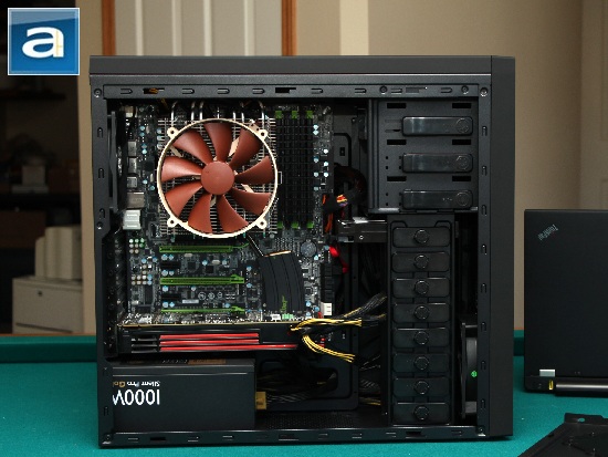 After a thorough cabling job, setting it up and hitting the power button, your system should look similar to what I have in the photo above. If you like what you see -- a clean, slick build -- then this case is definitely a consideration for your next shopping list, as it is valued at approximately $70 retail at press time. Before we forget, there is always a subjective test on the fan loudness. On a scale from 0.0 to 10.0 where 0.0 is the silent and 10.0 is loudest, the fans would come in at 2.5 subjective sound rating in my opinion.