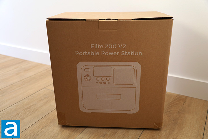 The BLUETTI Elite 200 V2's retail box is as simple as it gets. The brown corrugated cardboard packaging features only white ink printing all around. What you will find, depending on the side you look at, are elements like BLUETTI's logo, company slogan, product name and description, and/or an outline of the product. I really appreciate the clean, minimalist design.