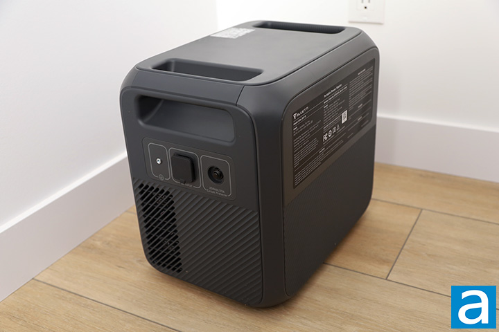 On the side is an AC input for charging the portable power station's internal 2073.6Wh LiFePO4 battery that claims to maintain 80% of its original capacity after 6000 cycles. The inlet is a standard C14 plug. Since the Elite 200 V2 has a default input power of 12A from the grid, and you can set it to go above that, I highly recommend switching to a C20 plug to ensure a high current certified power cable is used for safety reasons. The included AC power cable is a fat 14 AWG unit, but unless you have a stack of these kicking around, be sure not to lose it.