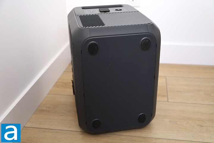 Here is a look at the bottom of the BLUETTI Elite 200 V2. There are four rubber feet at the bottom to keep the portable power station in place. On one side, there are more cooling vents, while a specifications label is placed on the back.