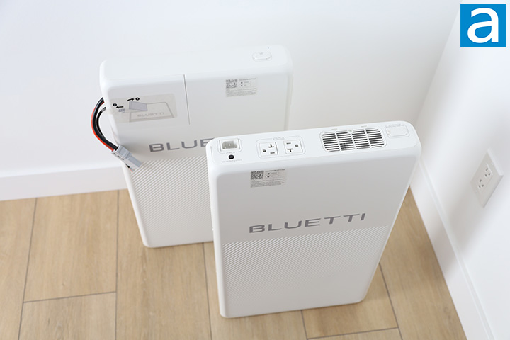 The BLUETTI FridgePower and BlueCell 200 each has about the same battery capacity as the Elite 200 V2 at around 2kWh, but they look nothing like the portable power station. Instead, both products come in the form of a slim rectangular prism with rounded corners and edges to easily fit behind your fridge, on top of your fridge, or really anywhere you need it. From my photo above, you can see the FridgePower and BlueCell 200 look basically the same. The matte white plastic enclosure is simple and practical, being reasonably scratch and fingerprint resistant. They both have BLUETTI's logo prominently displayed on the front. The FridgePower has an internal fan and cooling vents, which is rated at 30dB.